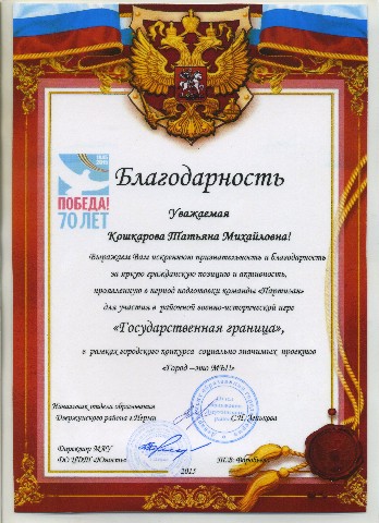 за активное участие в организации и проведении городского конкурса отрядов правоохранительной направленности. |