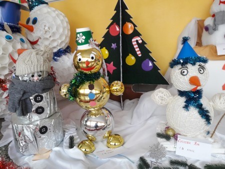 Классам было предложено нарисовать новогодние рисунки и изготовить снеговиков из подручных средств. Результатом конкурса стала яркая, новогодняя выставка рисунков и снеговиков на 2 этаже первого корпуса школы. Все проявили фантазию и творческий подход. Снеговики были сделаны из самых различных материалов: ваты, бумаги, ткани, стаканчиков, стеклянных шаров, ниток и даже из дерева. Дети и педагоги в восторге! На сколько богатая фантазия, и какие умелые руки у детей и родителей! В нашей начальной школе родители очень активный и благодарный народ. Они с удовольствием подхватывают любую затею.